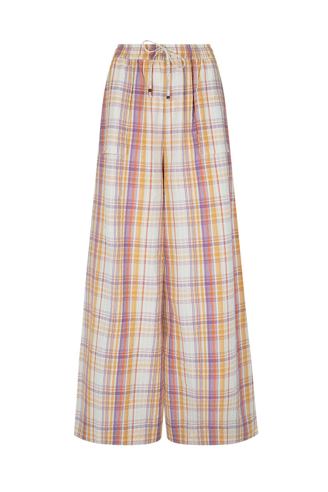 <p>Yarn Dyed Check<br>Elastic Waist<br>Waist Drawstring Tie<br>Front Pockets<br>Wide Leg&nbsp;</p>